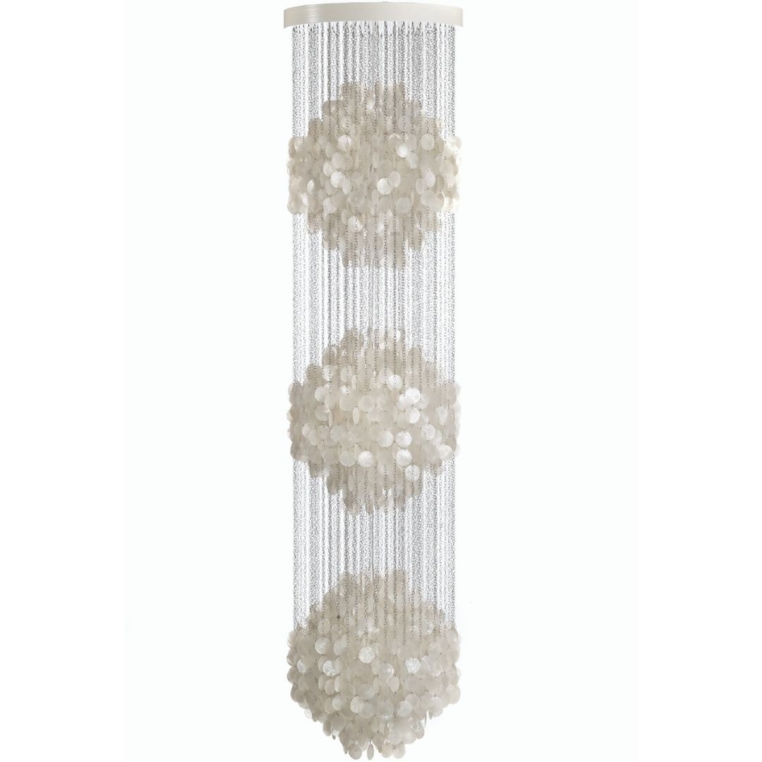 Vi har fundet Fun Pendel Dm Perlemor – Verpan fra Verpan hos Luxlight.dk i kategorien 1-4 Dages Leveringstid. Fun 3DM er en pendel, som er designet af Verner Panton, og den er blevet produceret hos Verpan. Det er en enestående lampe, som har sit ophav i 1964. Den har flotte lameller, der omkredser lyskilden, og derved sikrer den et utroligt lækkert lys. Lamellern